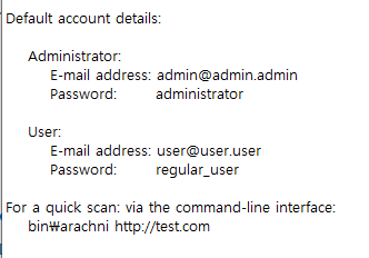 자체 설치된 arachni 웹페이지에 접속이 됩니다.