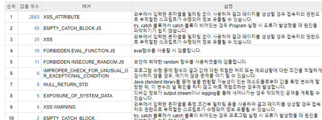 | 순번 | 타입 | 체커 | 위험도 | 항목 내용 |