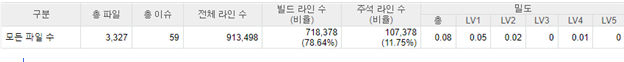 - 소스 파일 개수 3,327, 빌드 라인 수 718,378라인