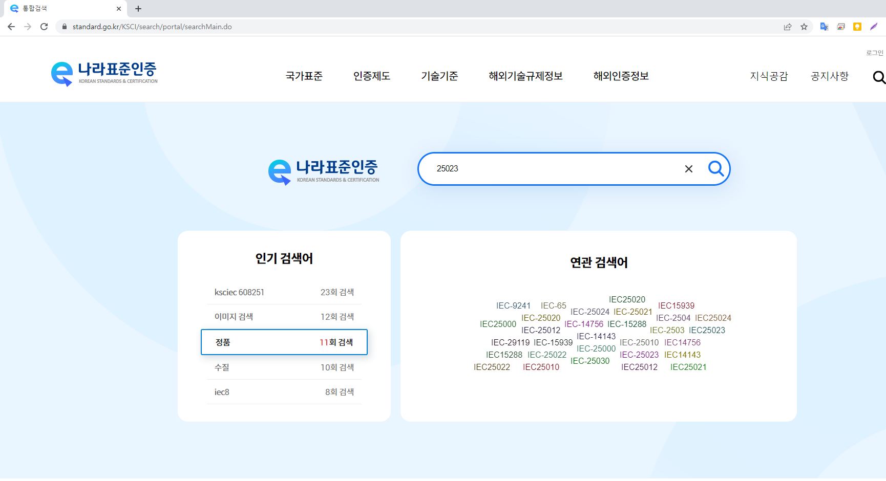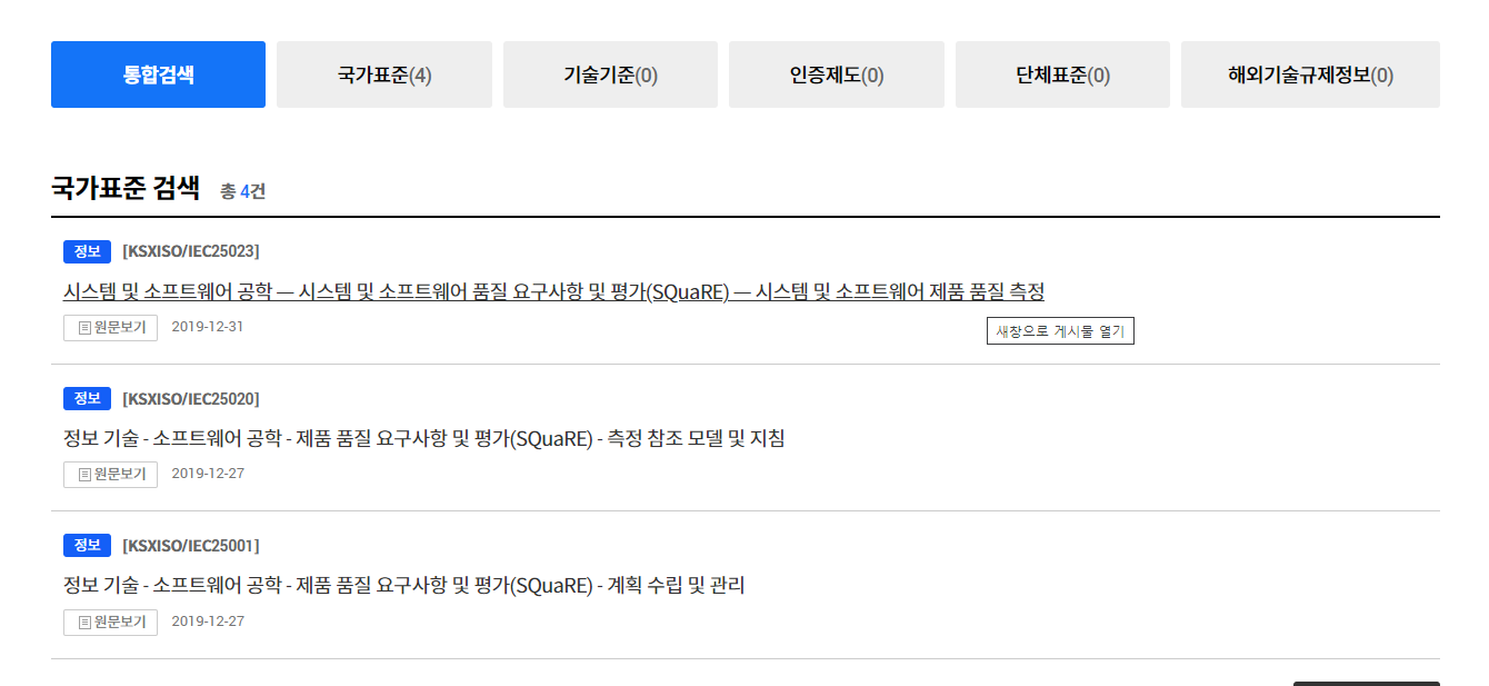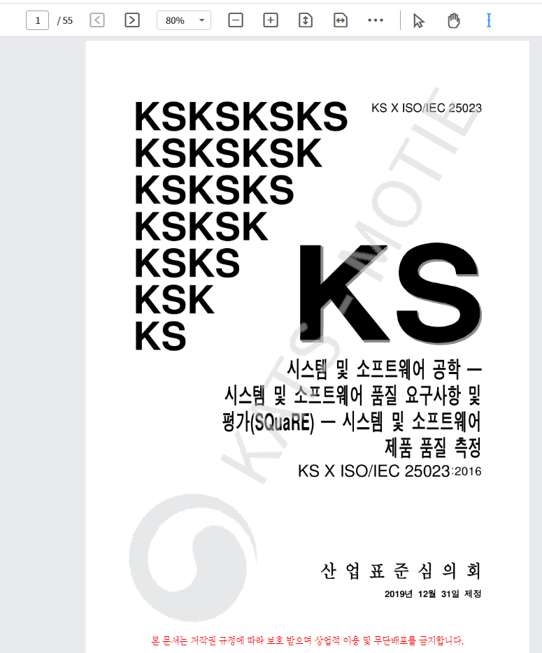 GS인증으로 유명한 ISO/IEC 25023을 검색해 보겠습니다.